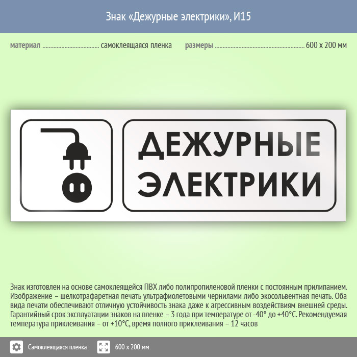 Знак «Дежурные электрики», И15 (пленка, 600х200 мм) в Верее купить
