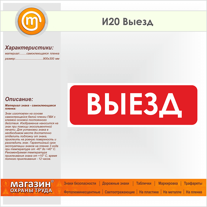 Знак «Выезд», И20 (пленка, 900х300 мм) в Верее купить