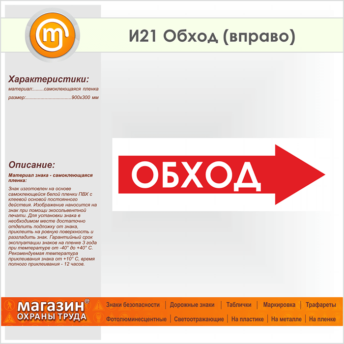 Знак «Обход (вправо)», И21 (пленка, 900х300 мм) в Верее купить