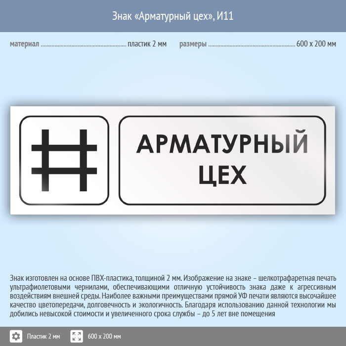 Знак «Арматурный цех», И11 (пластик, 600х200 мм) в Верее купить