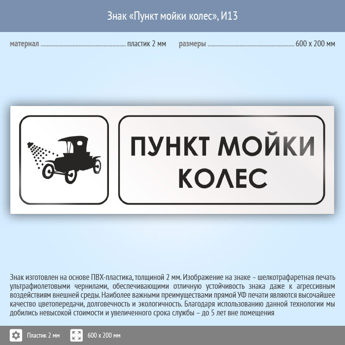 Знак «Пункт мойки колес», И13 (пластик, 600х200 мм) в Верее купить