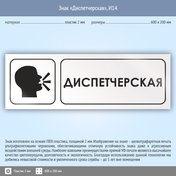 Знак «Диспетчерская», И14 (пластик, 600х200 мм) в Верее купить