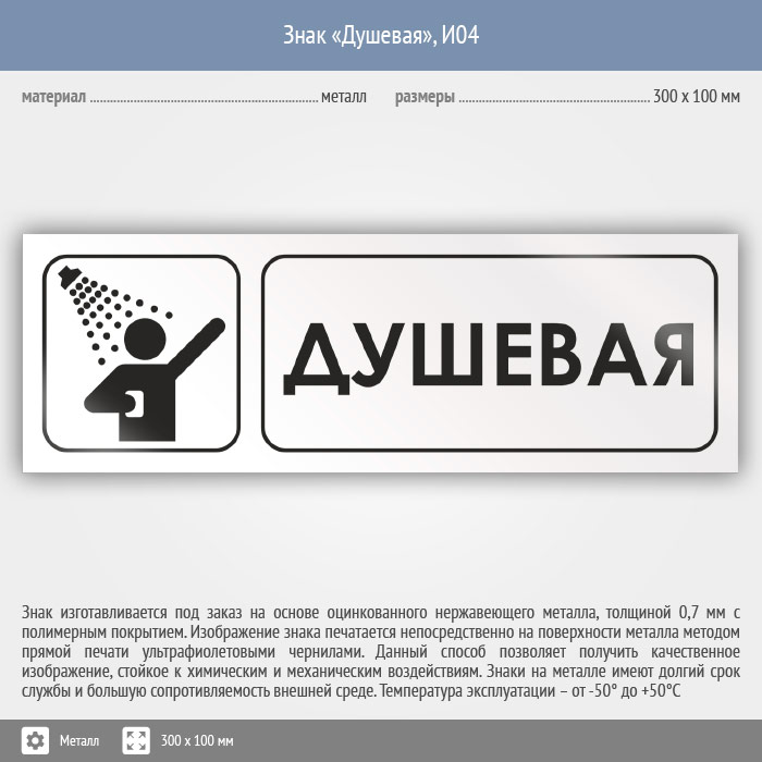 Знак «Душевая», И04 (металл, 300х100 мм) в Верее купить
