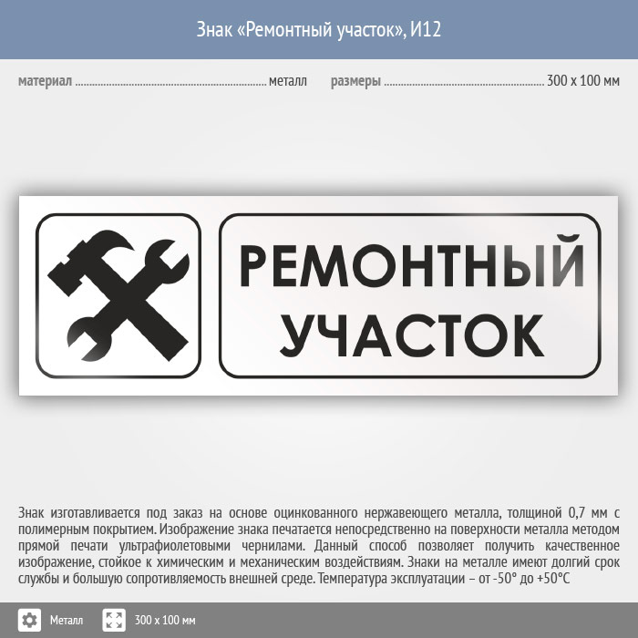 Знак «Ремонтный участок», И12 (металл, 300х100 мм) в Верее купить