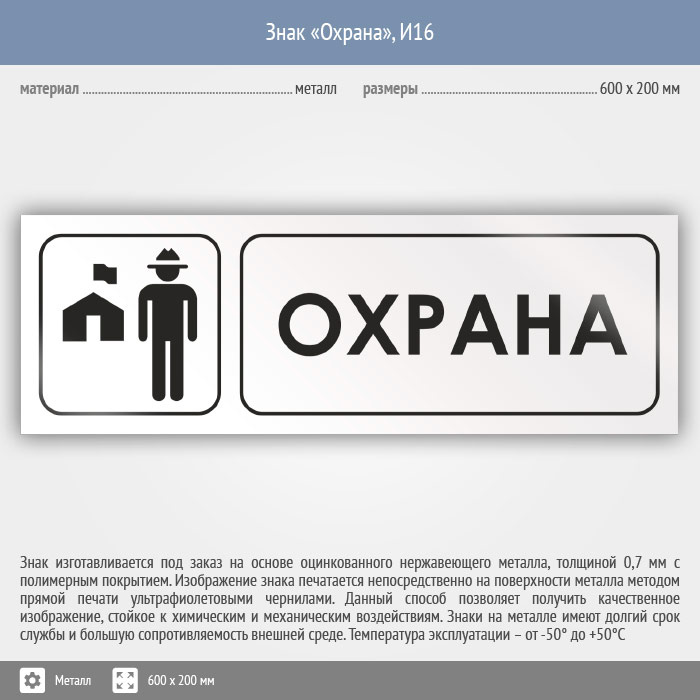 Знак «Охрана», И16 (металл, 600х200 мм) в Верее купить