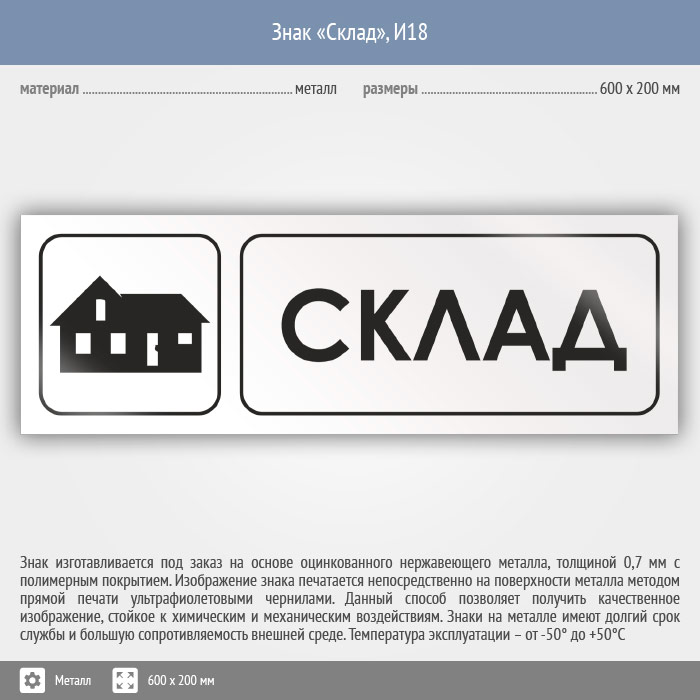Знак «Склад», И18 (металл, 600х200 мм) в Верее купить
