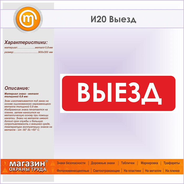 Знак «Выезд», И20 (металл, 900х300 мм) в Верее купить