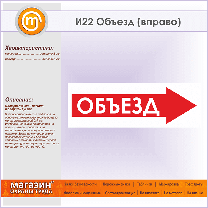 Знак «Объезд (вправо)», И22 (металл, 900х300 мм) в Верее купить