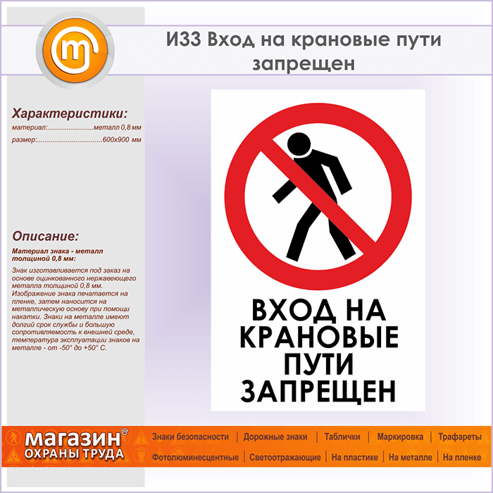 Знак «Вход на крановые пути запрещен», И33 (металл, 600х900 мм) в Верее купить