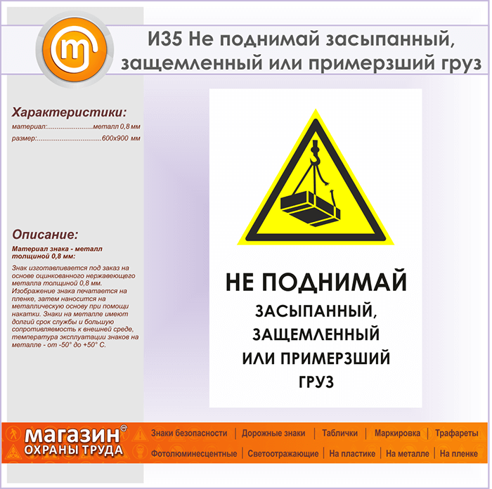 Знак «Не поднимай засыпанный, защемленный или примерзший груз», И35 (металл, 600х900 мм) в Верее купить