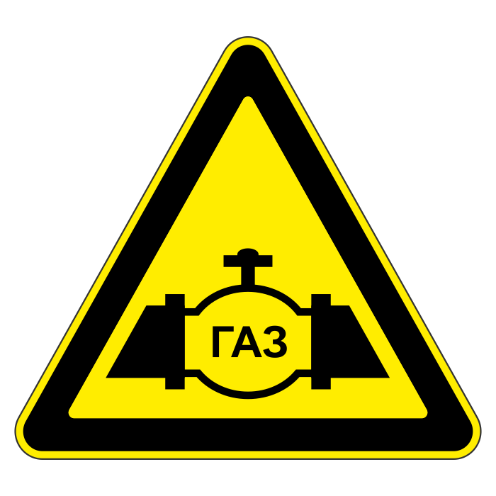 Знак «Осторожно газопровод», МГ-2 (металл 0,8 мм, II типоразмер: сторона 900 мм, С/О пленка: тип А инженерная) в Верее купить