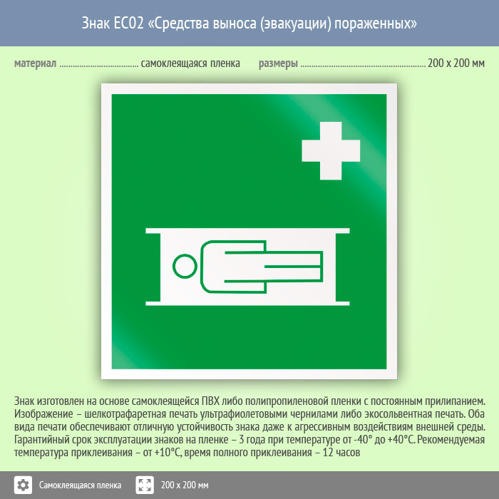 Знак EC02 «Средства выноса (эвакуации) пораженных» (пленка, 200х200 мм) в Верее купить