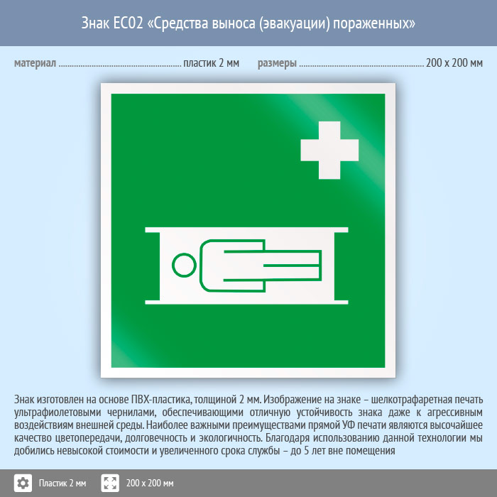 Знак EC02 «Средства выноса (эвакуации) пораженных» (пластик, 200х200 мм) в Верее купить