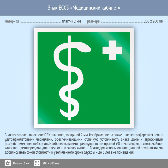 Знак EC05 «Медицинский кабинет» (пластик, 200х200 мм) в Верее купить