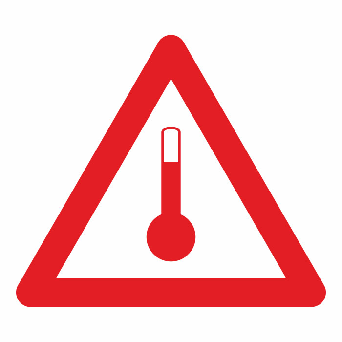 Наклейка «Перевозка при повышенной температуре» (пленка ламинированная, сторона 250 мм) в Верее купить