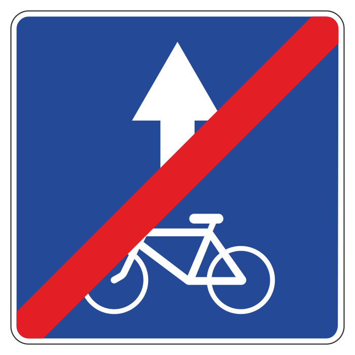 Дорожный знак 5.14.3 «Конец полосы для велосипедистов» (металл 0,8 мм, II типоразмер: сторона 700 мм, С/О пленка: тип Б высокоинтенсивная) в Верее купить