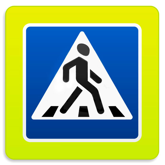 Дорожный знак 5.19.2д «Пешеходный переход» флуоресцентный (металл 0,8 мм, II типоразмер + кант: сторона 900 мм, С/О пленка: тип В алмазная) в Верее купить