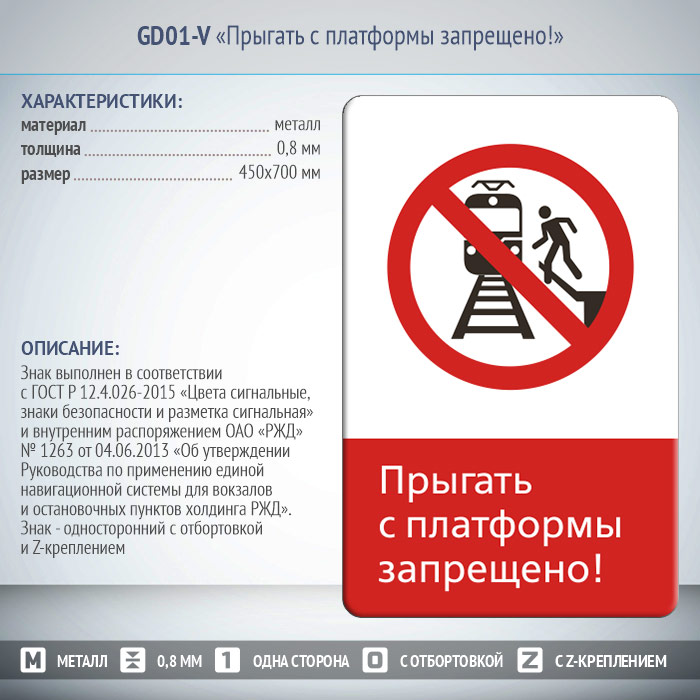 Знак «Прыгать с платформы запрещено!», GD01-V (односторонний вертикальный, 450х700 мм, металл, с отбортовкой и Z-креплением) в Верее купить