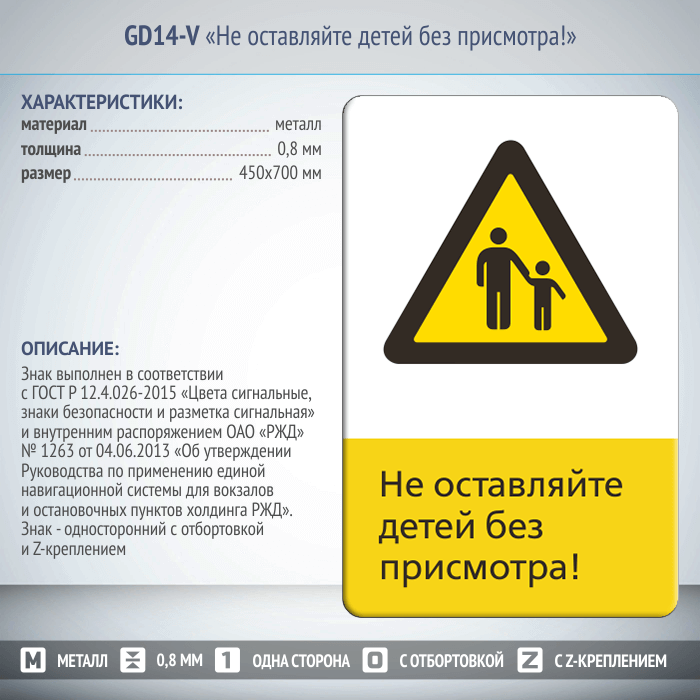 Знак «Не оставляйте детей без присмотра!», GD14-V (односторонний вертикальный, 450х700 мм, металл, с отбортовкой и Z-креплением) в Верее купить