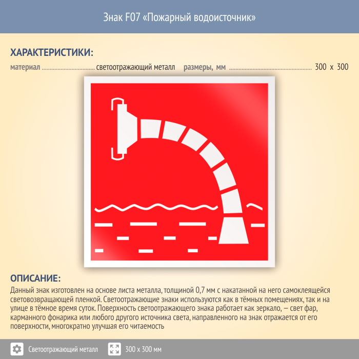 Знак F07 «Пожарный водоисточник» (светоотражающий металл, 300х300 мм) в Верее купить