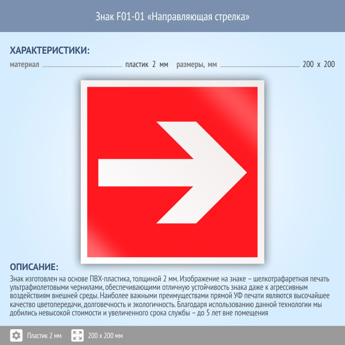 Знак F01-01 «Направляющая стрелка» (пластик, 200х200 мм) в Верее купить