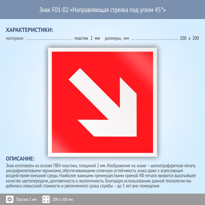 Знак F01-02 «Направляющая стрелка под углом 45°» (пластик, 200х200 мм) в Верее купить