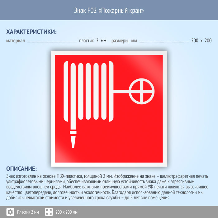 Знак F02 «Пожарный кран» (пластик, 200х200 мм) в Верее купить