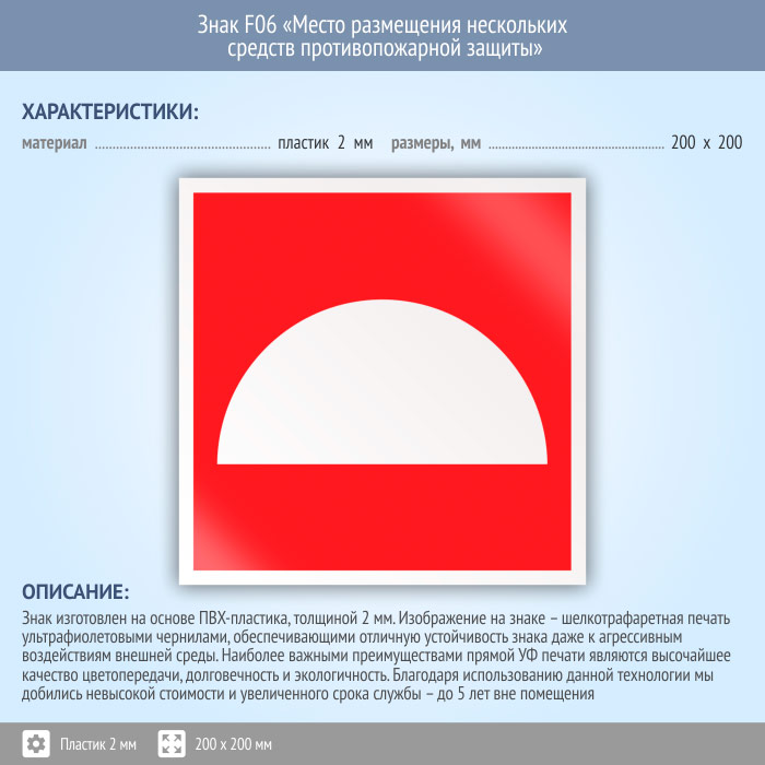 Знак F06 «Место размещения нескольких средств противопожарной защиты» (пластик, 200х200 мм) в Верее купить