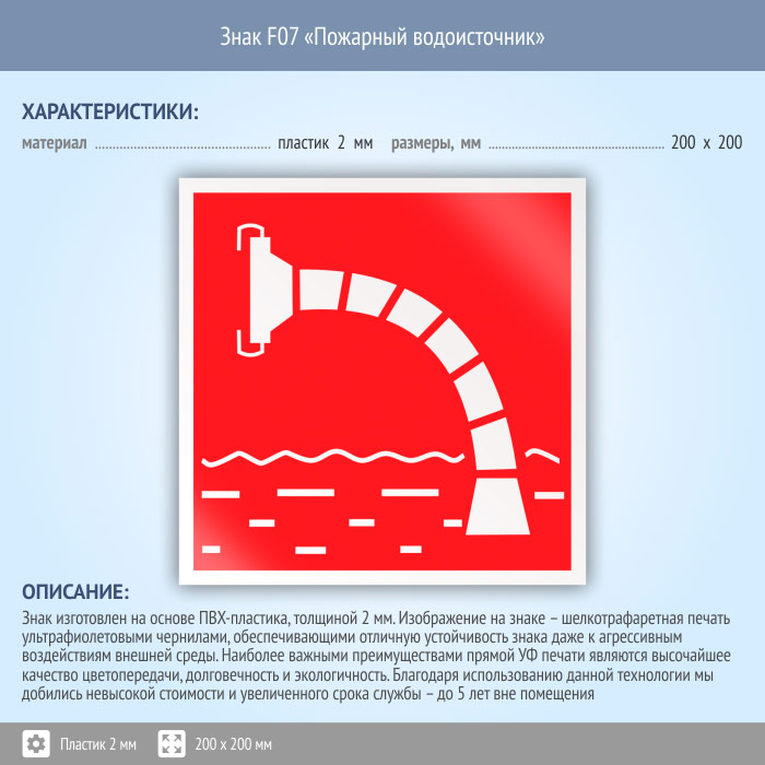 Знак F07 «Пожарный водоисточник» (пластик, 200х200 мм) в Верее купить