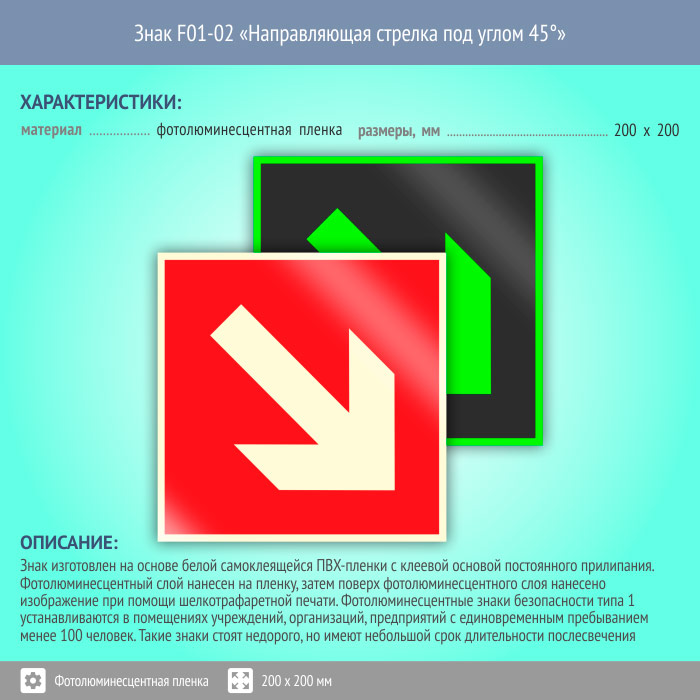 Знак F01-02 «Направляющая стрелка под углом 45°» (фотолюминесцентная пленка, 200х200 мм) в Верее купить
