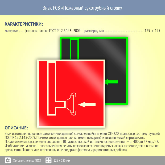 Знак F08 «Пожарный сухотрубный стояк» (фотолюминесцентная пленка ГОСТ 34428-2018, 125х125 мм) в Верее купить