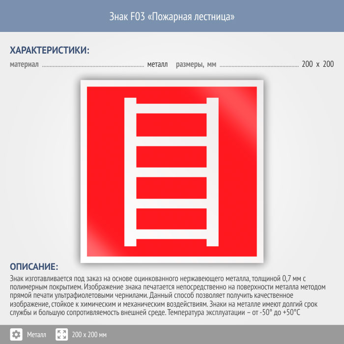 Знак F03 «Пожарная лестница» (металл, 200х200 мм) в Верее купить