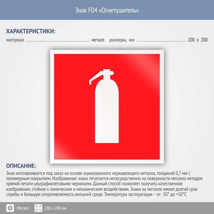 Знак F04 «Огнетушитель» (металл, 200х200 мм) в Верее купить