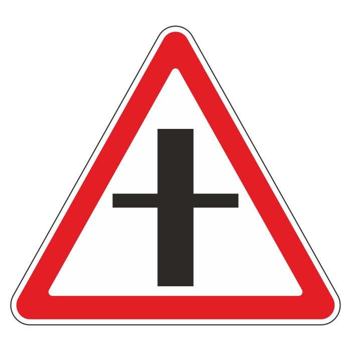 Дорожный знак 2.3.1 «Пересечение со второстепенной дорогой» (металл 0,8 мм, III типоразмер: сторона 1200 мм, С/О пленка: тип А коммерческая) в Верее купить
