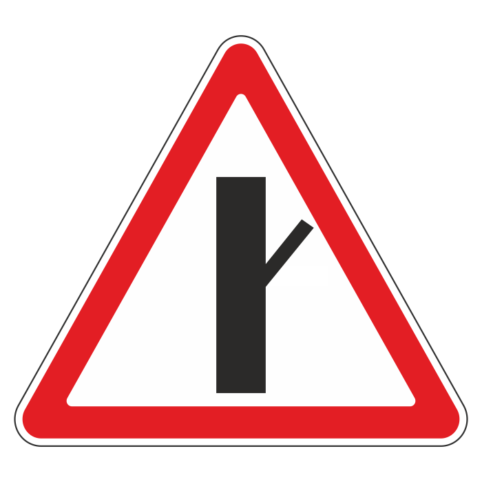 Дорожный знак 2.3.4 «Примыкание второстепенной дороги справа» (металл 0,8 мм, III типоразмер: сторона 1200 мм, С/О пленка: тип В алмазная) в Верее купить