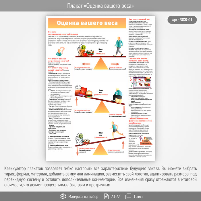 Плакат «Оценка вашего веса» (ЗОЖ-01, 1 лист) в Верее купить
