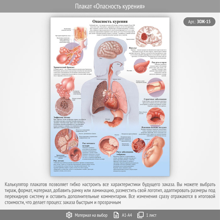 Плакат «Опасность курения» (ЗОЖ-15, 1 лист) в Верее купить
