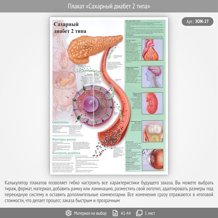Плакат «Сахарный диабет 2 типа» (ЗОЖ-27, 1 лист) в Верее купить