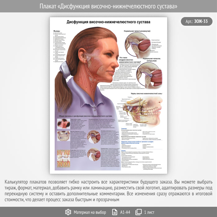 Плакат «Дисфункция височно-нижнечелюстного сустава» (ЗОЖ-33, 1 лист) в Верее купить
